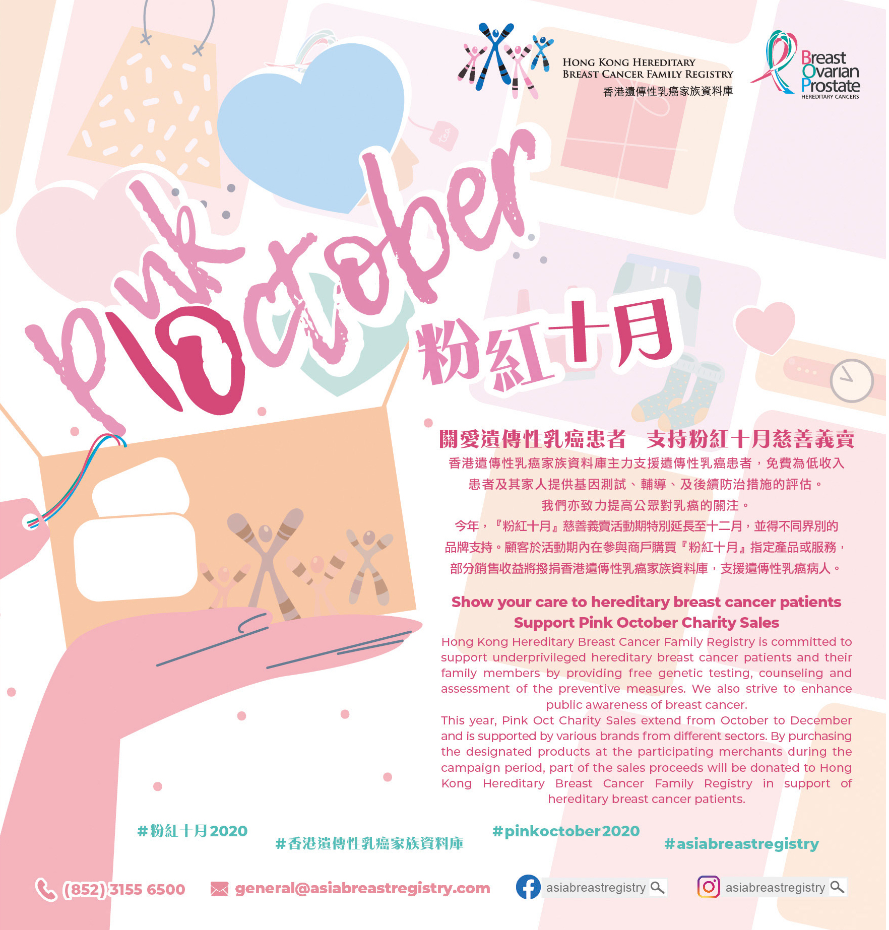 AKiR 很榮幸連續兩年(2019及2020)被邀請參與呢個有義意的活動💖凡訂購AKiR粉紅十月系列 (Pink October Collection)內任何款式,AKiR 都會將此系列總銷售額50% 捐到香港遺傳性乳癌家族資料庫 HK Hereditary Breast Cancer Family Registry,資助患有遺傳性癌症(包括: 乳癌、卵巢癌及前列腺癌)的高危家庭,進行基因測試,提供輔導及臨床醫護服務。