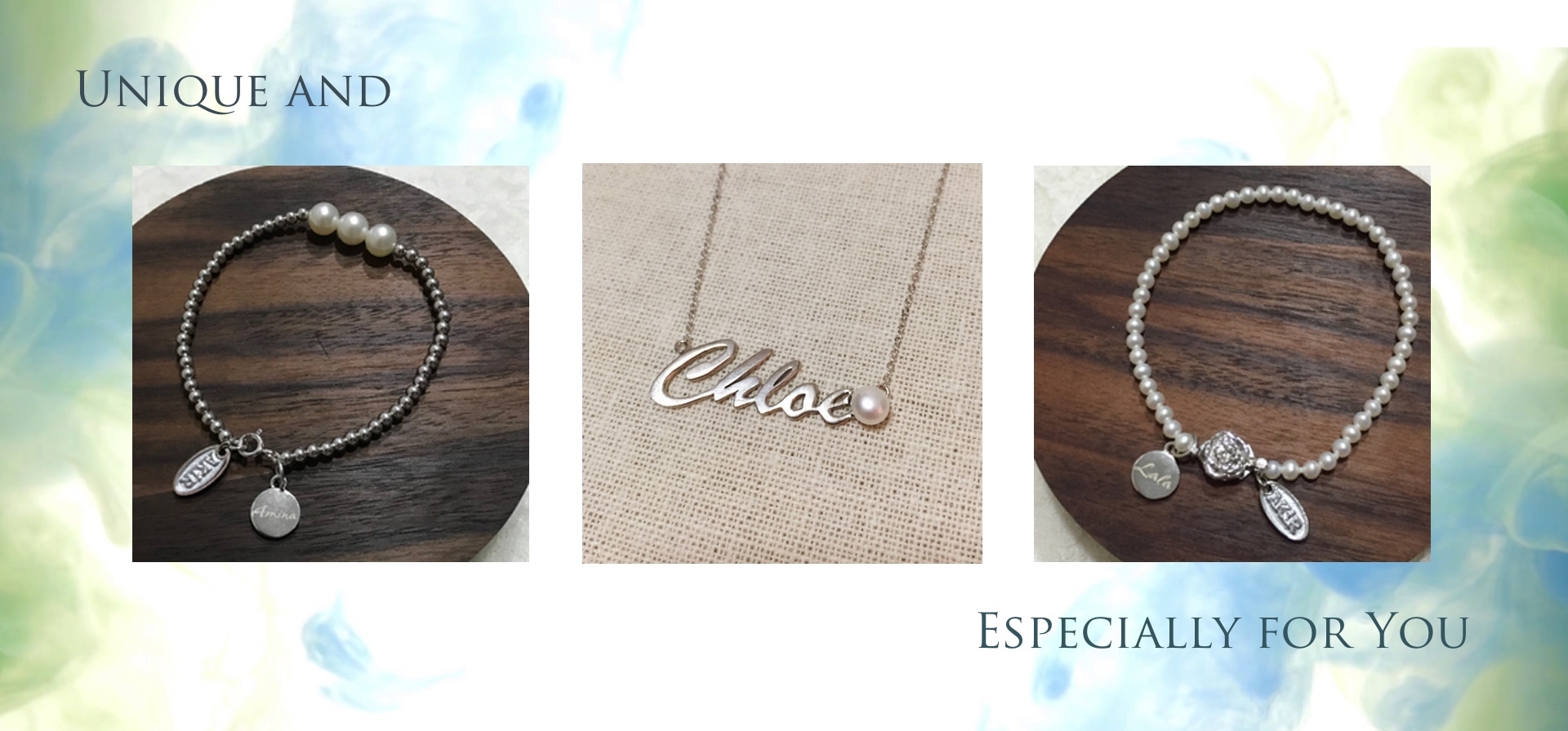大部份AKiR 珍珠手鏈或珍珠頸鏈都可以配上專屬您名字的名牌,令首飾更顯獨特。